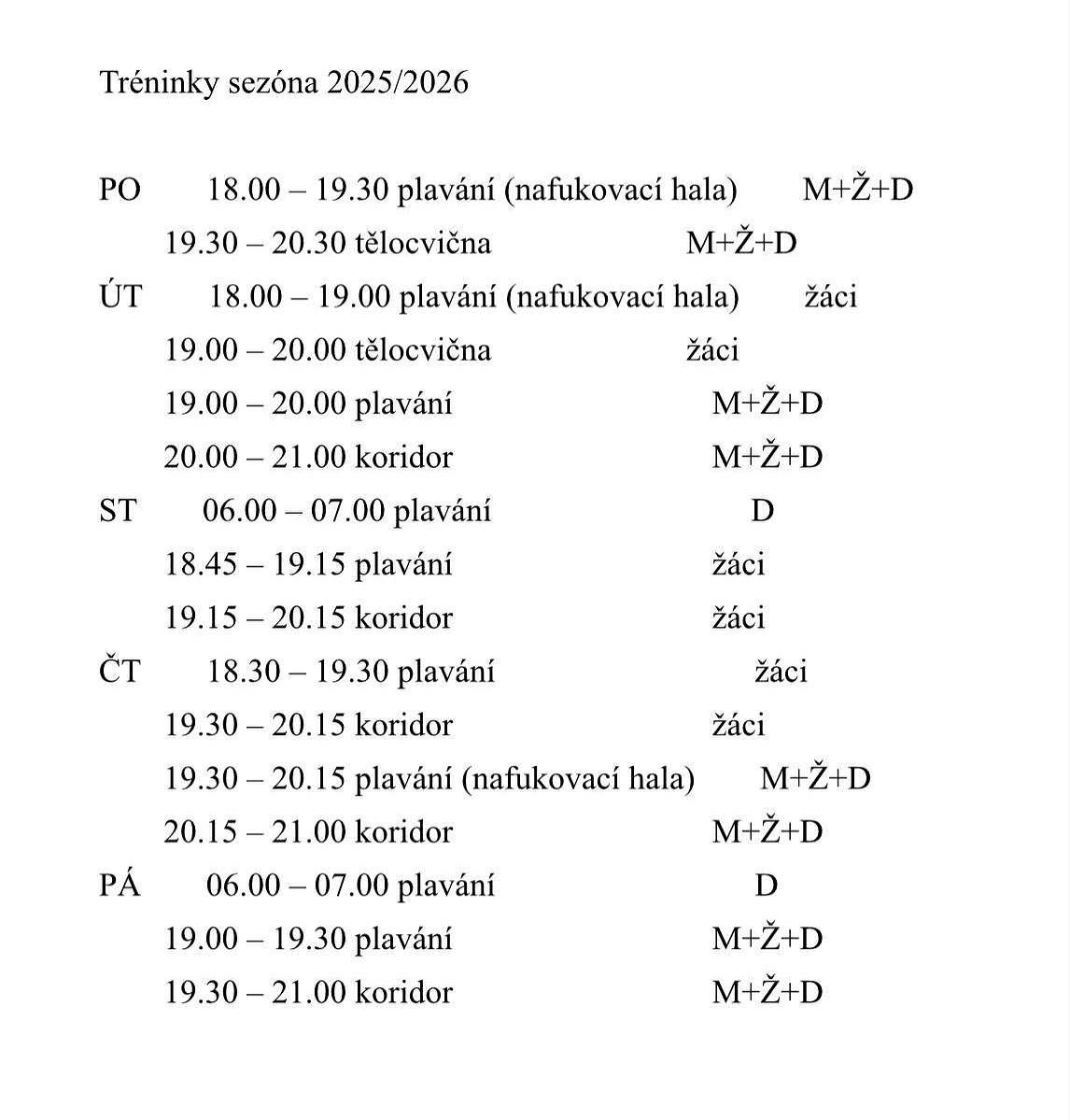 | Připojené album k článku: TRÉNINKOVÝ PLÁN 2025-2026 |